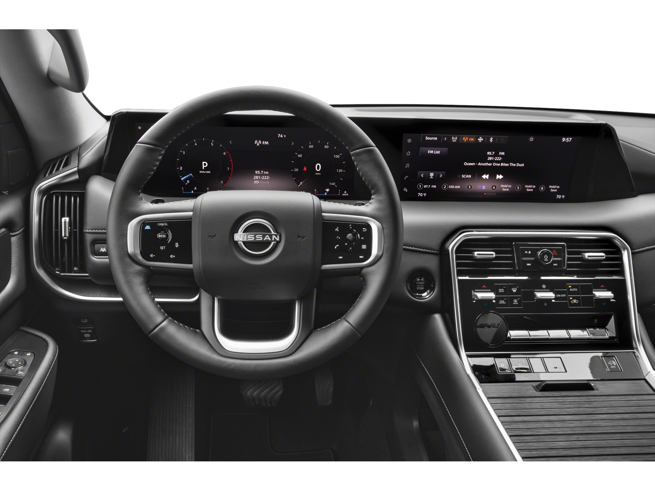- Radio: NissanConnect w/SiriusXM 360L -inc: 6 speakers w/advanced audio features, 12.3" center touch-screen display, wireless Apple CarPlay and Android Auto, Bluetooth® hands-free phone system, Siri Eyes Free, hybrid radio, 5G capability, 2 USB type-C connection ports in front, Amazon Alexa w/Hotword, voice recognition and system controlled navigation w/traffic information