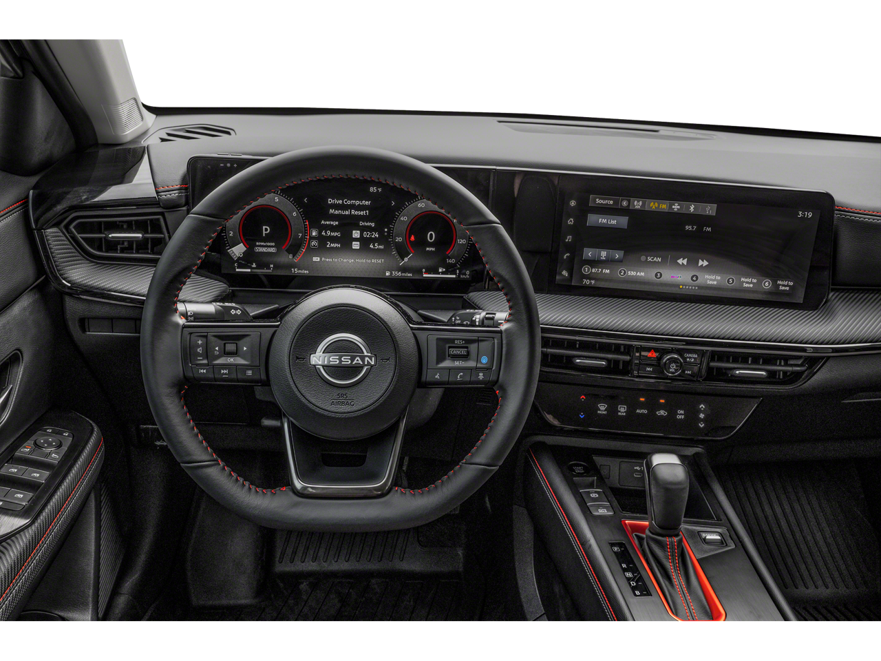 - Radio: AM/FM/SiriusXM Audio System -inc: 12.3" color touchscreen display w/6 speakers, Bluetooth® hands-free phone system, streaming audio via Bluetooth®, NissanConnect Services powered by SiriusXM featuring wireless Apple CarPlay, wireless Android Auto, Siri eyes free and hands-free text messaging assistant, audio and Bluetooth® steering wheel switches and Wi-Fi hotspot